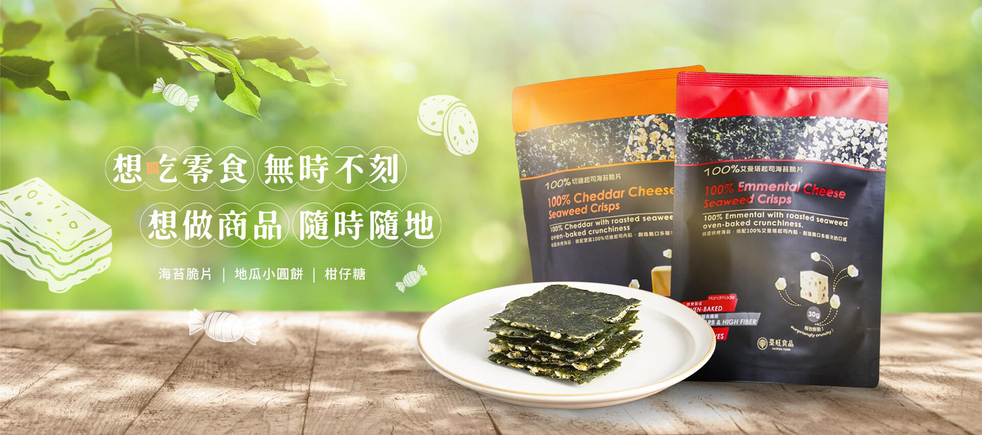 海苔脆片 · 蛋白餅乾 · 糖果