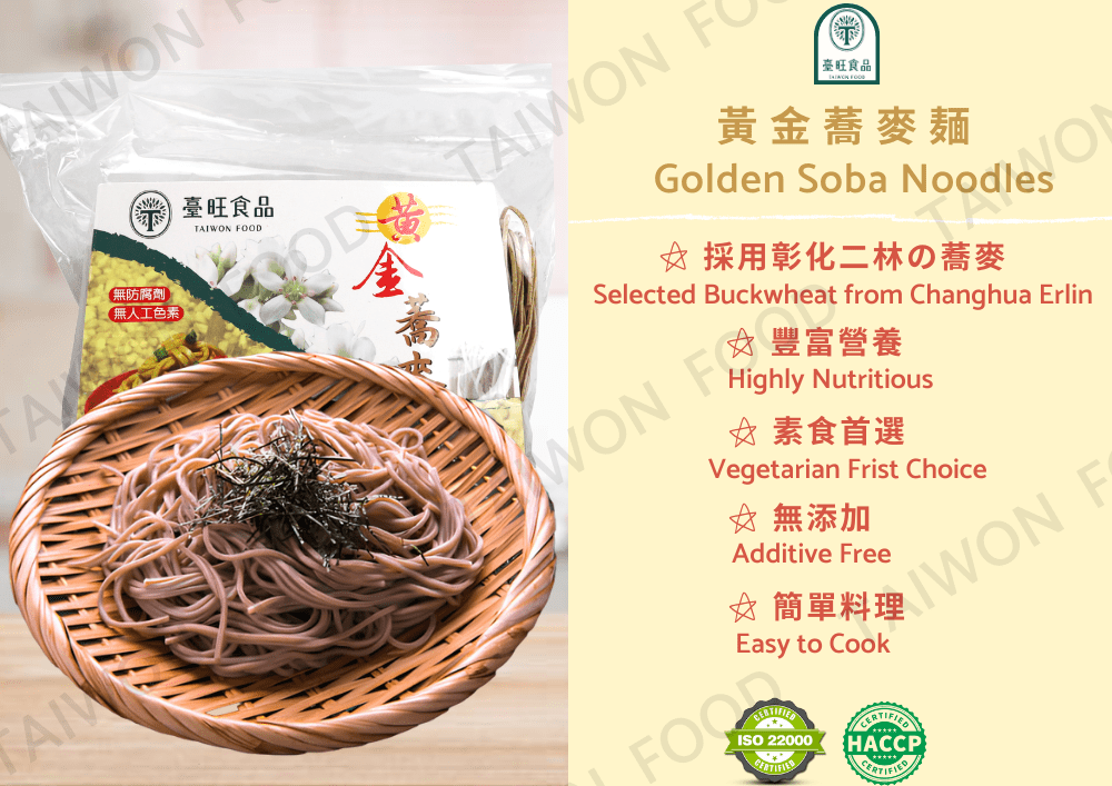 ◆湯麵 Noodles Soup:將適量的水燒至沸騰,再將黃金蕎麥麵放入,以筷子輕輕攪拌三分鐘即可煮熟。Boil water and cook for 3 minutes. Stir and serve.
