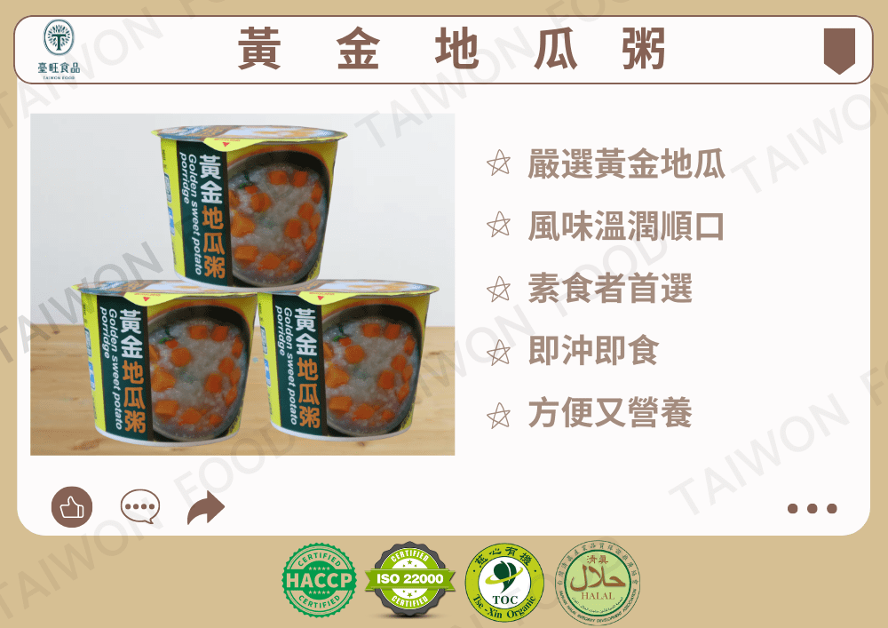 調味包:預糊化樹薯澱粉、鹽、白米粉、66號紅心地瓜粉、馬鈴薯粉(馬鈴薯、脂肪酸甘油脂)、糖、昆布抽出物、白胡椒、酵母粉、薑粉
